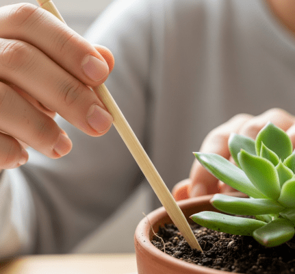 - Cách 1: Dùng ngón tay hoặc một chiếc đũa gỗ cắm sâu xuống đất khoảng 2-3 cm. Nếu rút lên thấy đất vẫn còn ẩm, hãy đợi thêm vài ngày nữa.