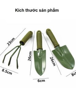 Mô tả: Bộ dụng cụ làm vườn 3 món có cán nhựa chống trượt bao gồm: 1 xẻng vuông, 1 xẻng nhọn và 1 cào. Bộ dụng cụ sử dụng tiện lợi, kiểu dáng nhỏ gọn, chất liệu lưỡi là thép siêu bền, là vật dụng không thể thiếu nếu bạn có trồng cây cảnh, trồng rau, trồng hoa.