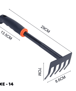 Mô tả sản phẩm: Cào thép làm vườn cán nhựa TXE-14 là một trong những dụng cụ cơ bản nhất của bộ làm vườn, giúp việc làm vườn trở nên đơn giản hơn. Đây là dụng cụ lý tưởng giúp cào đất dễ dàng hơn, nó thu gọn phần rễ cây, lá cây, đất to vào một bên, thu gọn nhặt nhanh hơn hay phân đất to thành đất nhỏ nhanh gọn hơn. Cào có hình dáng tương tự như chiếc cuốc đất, làm từ thép cao cấp Inox 201 bền chắc, bên ngoài sơn tĩnh điện sáng bóng, dễ dàng lau chùi, vệ sinh.