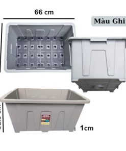 Chậu nặng 3.2kg được thiết kế siêu to, sâu, rộng, có chiều dài miệng chậu 66cm, chiều rộng miệng chậu 47.5cm, chiều cao chậu lên đến 32.5cm, thể tích chậu 70 lít cùng diện tích bề mặt trồng 0.3 mét vuông.