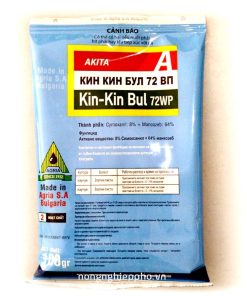 Mô tả: Thuốc trừ bệnh cây trồng Kin Kin Bul 72WP chứa 2 hoạt chất Macozeb và Cymoxanil có tác động tiếp xúc, nội hấp và lưu dẫn mạnh nên có khả năng diệt trừ các loại nấm bệnh trên cây trong một cách cực kỳ hiệu quả và an toàn.