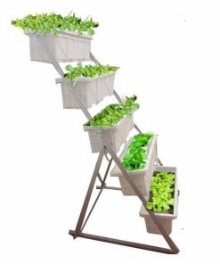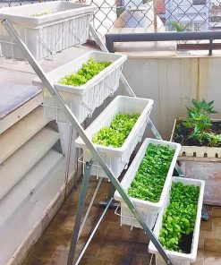 gồm giàn trồng 5 tầng được thiết kế nhỏ gọn và tiện lợi, rất thích hợp trồng rau sạch tại các ban công, nhà phố hay thậm chí chung cư chật hẹp. Kích thước giàn trồng khi mở ra 1.2 x 0.65 x 0.65m ( cao x rộng x dài ).